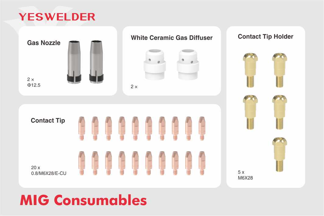 The consumable kits suit YesWelder’s new line welders: YWM-200 and YWM-211P,DP200.